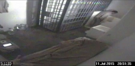 grand escape from his prison cell has been revealed. In the footage