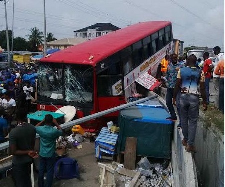 A LagBus crashed today after the driver lost control during commercial activities at Igbo-Efon area of Lagos.